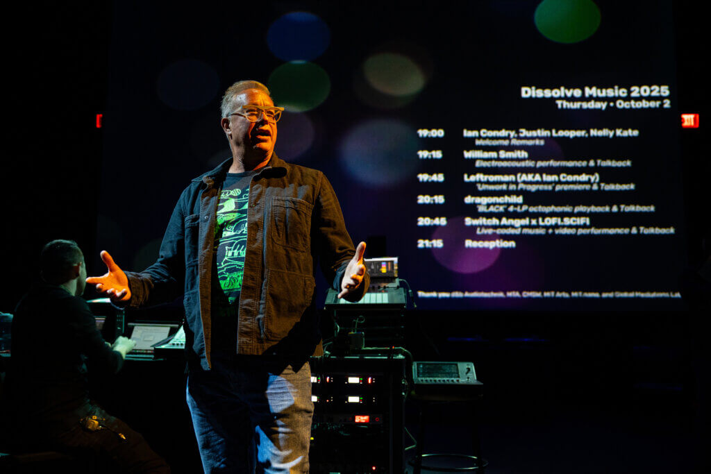 Dissolve Music @ MIT was a two-day spatial sound showcase and conference held Oct. 2-3, 2025 in MIT’s black box theater in Music and Theater Arts’ building W97. The event connected the MIT community with students, faculty, musicians and technologists from around the world through performances, discussions, lightning talks, and receptions.